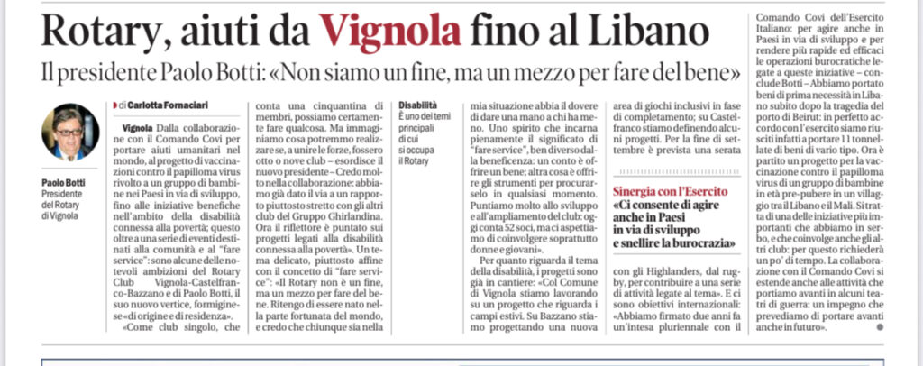 Il Rotary Club Vignola-Castelfranco-Bazzano dimostra così la capacità di essere ponte tra il locale e il globale: un presidio di valori e solidarietà che, da cinquant’anni, continua a promuovere il bene comune con azioni concrete e una visione di lungo periodo.